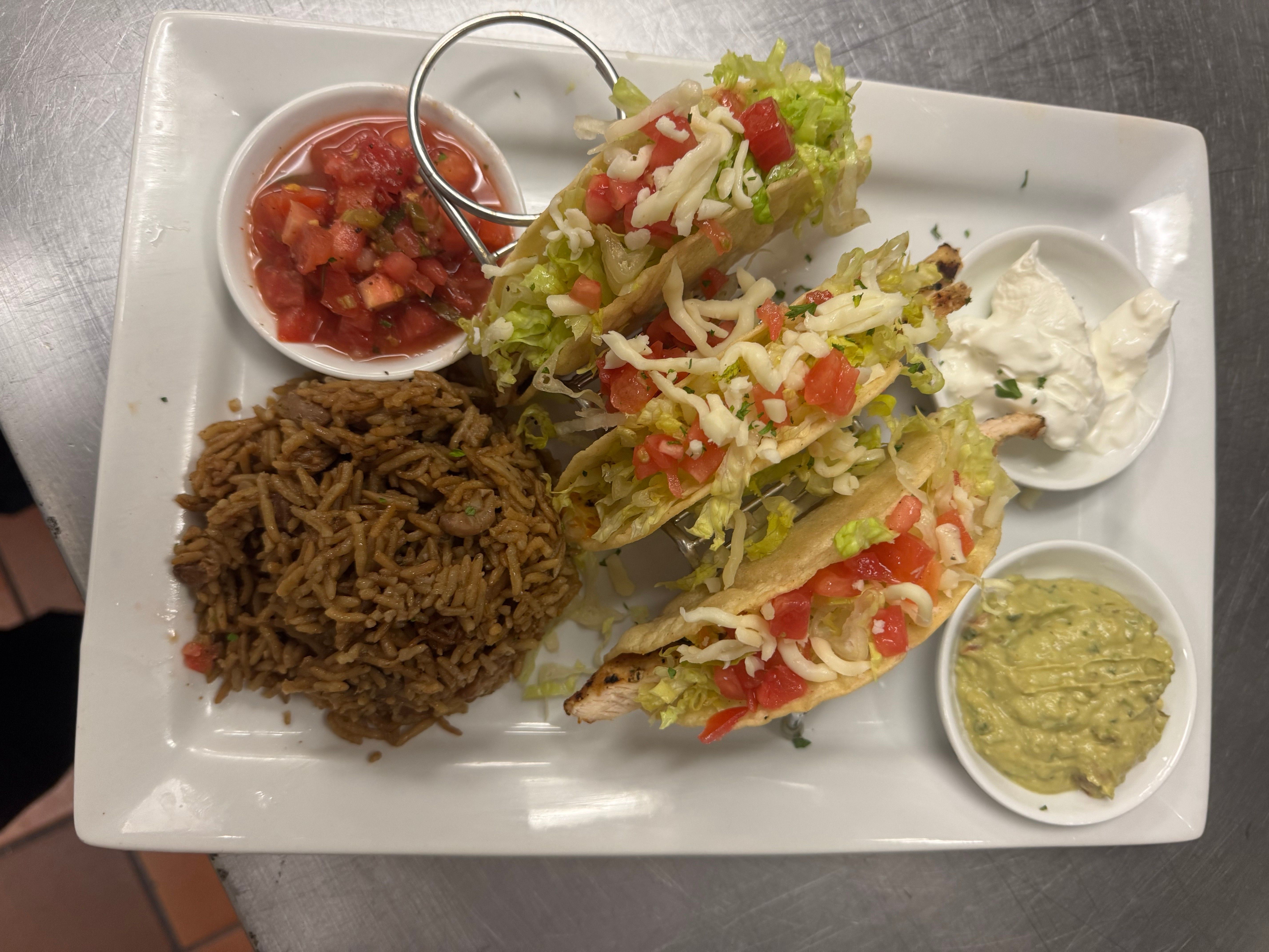 Ground Beef Quesadilla, Cheese Dip With Chorizo And Chicken Flauta Served With Lettuce, Pico De Gallo, Sour Cream, Queso Fresco, And Your Favorite Green Or Red Sauce
